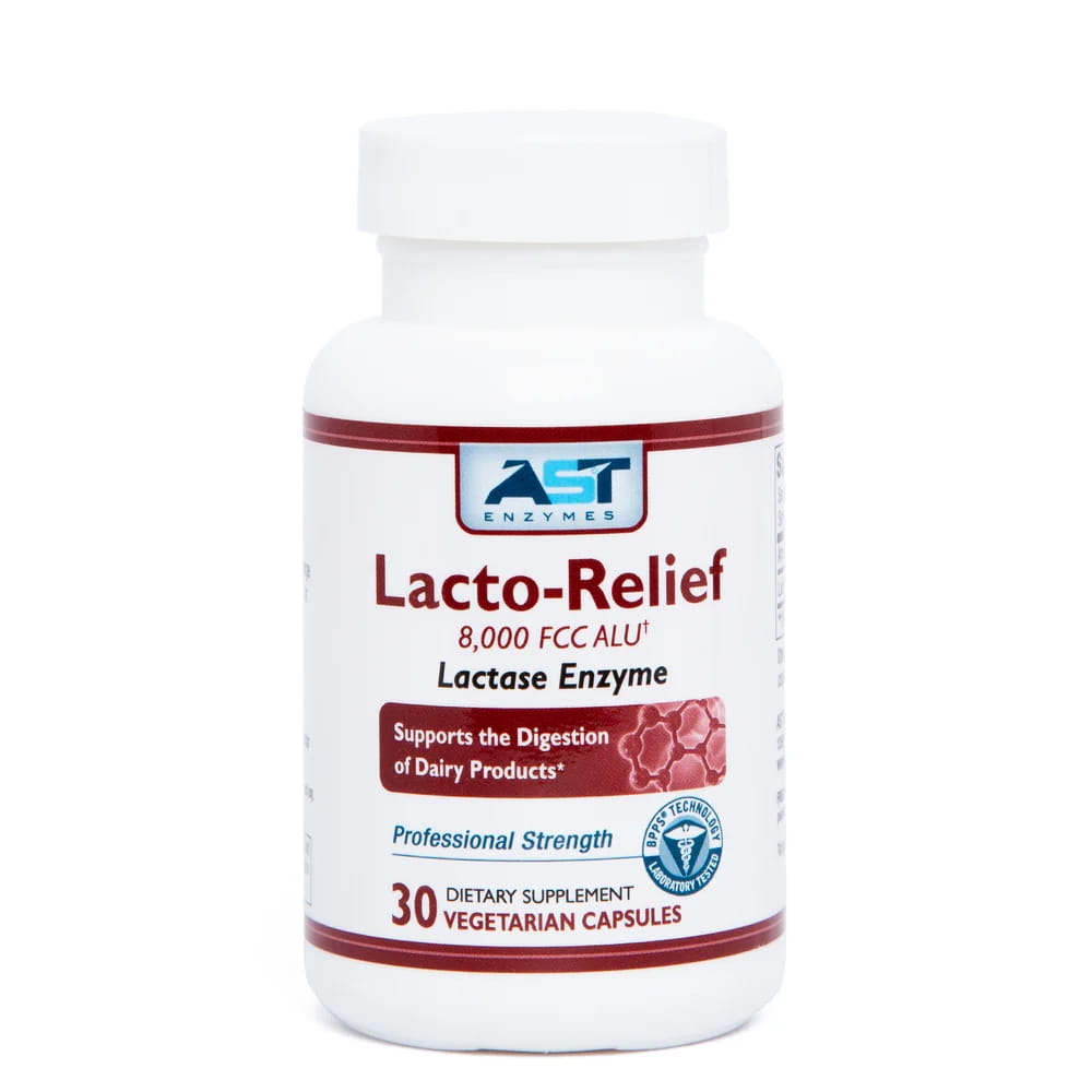 AST Enzymes Lacto-Relief 8,000 FCC ALU Lactase – 30 Veg Capsules
